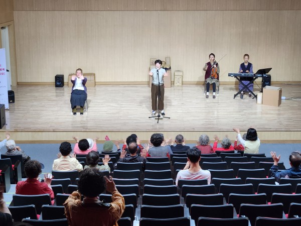 10월 문화가 있는 날(여기,우리 극단) 페이지 정보 작성자관리자 댓글0 조회691 작성일23.10.12 09:22 본문 공유 한국문화예술위원회와 한국노인종합복지관협회 연계하여신나는 예술여행 프로그램을 진행하였습니다.이번 공연은 건반, 바이올린 등 라이브 연주와 함께 어르신들이 공감하고 웃고 즐길 수 있는 가면극으로 준비해보았습니다.먼길까지 오셔서 멋진공연을 해주신 '여기,우리'관계자분들에게 다시한번 감사인사드립니다^^ -사회참여지원팀 배치웅 선임사회복지사- 이전글2023년 한국한센복지협회 대전충남지부 피부과 진료 2회기 23.10.13 다음글노인맞춤돌봄 지역별 원예자조모임 예산2지역 4회기 23.10.06 Comment 0 댓글목록 등록된 댓글이 없습니다.