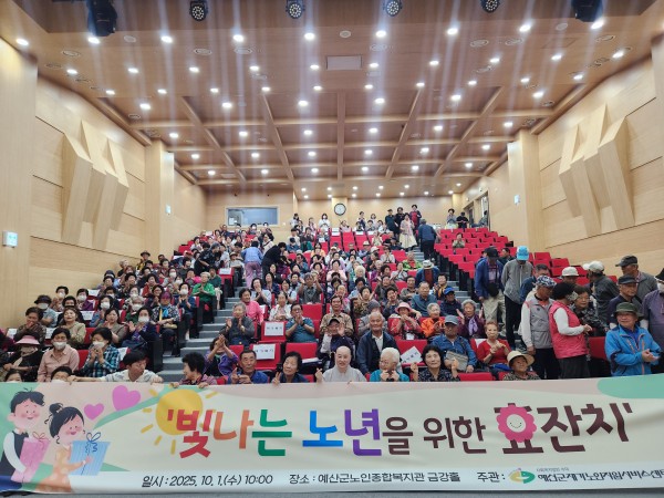 내용: 예산군재가노인지원서비스를 받고 계시는 재가노인, 맞춤돌봄 및 관내 어르신들을 모시고 효잔치 진행