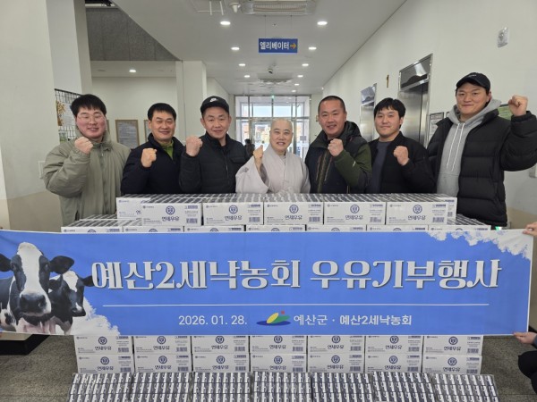 예산군조사료협회(회장 이상헌) [쌀 10kg 90포], 예산2세 낙농회(회장 김효진) [멸균우유 130박스]를 지난 1월 28일(수)에 전달받았습니다.