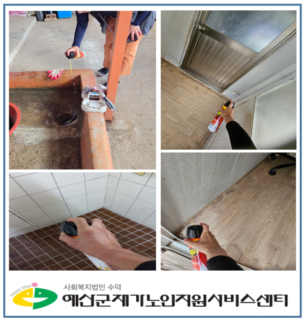 실내 연무소독이 법적으로 제한됨에 따라, 복지관에서 후원받은 해충제를 활용하여 부엌, 화장실, 현관 등 해충 발생이 우려되는 구역 중심으로 안전하